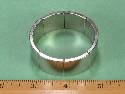 This arc segment is designed so that 8 of them will combine to form a ring of 2 1/4" od x 2" id, with alternating poles. To form the ring, you will need four of the AX2C45-N and four of the AX2C45-S.