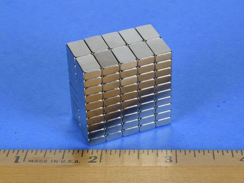 Coating: Most neodymium magnets are plated or coated in order to protect the magnet material from corrosion. Check out our Custom Magnets for unplated magnets and other coatings not stocked for this size magnet. Learn more about all available platings and coating in our What Magnet Coating Should I Use? article.Nickel-Copper-Nickel (Ni-Cu-Ni)
