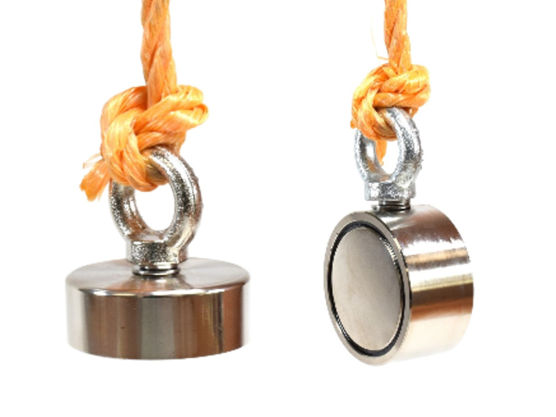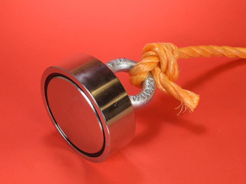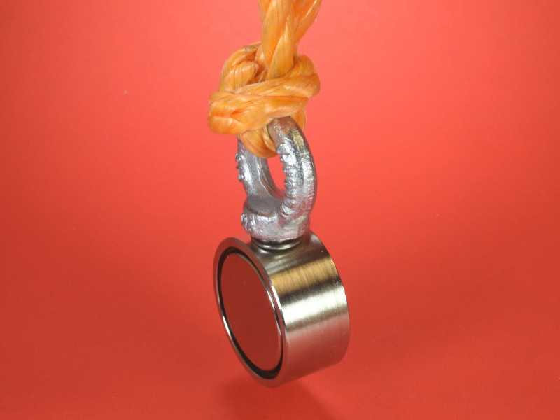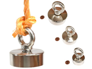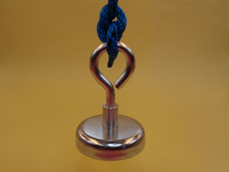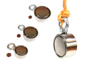 Our eye hook mounting magnets are more affordable, come in smaller sizes and strengths and a rope can easily be attached. This is a good way to start magnet fishing and get used to the tremendous power of neodymium magnets.