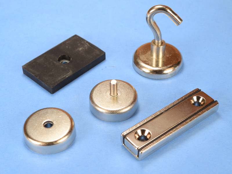Assortment of super strong neodymium fishing magnets Assortment of eye hook mounting magnets for beginner magnet fishers Assortment of strong neodymium mounting magnets for custom fishing magnets