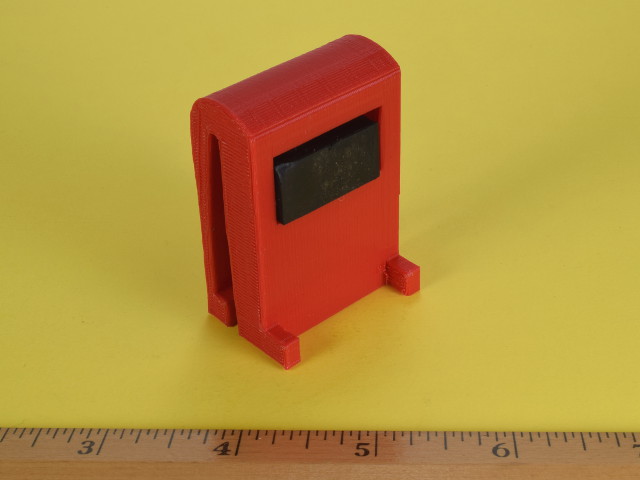 This powerful magnet solved the problem, but we're not sure it's the best solution. It's a powerful hold, but there's still some slipping going on. We might worry about pinching a finger with such a strong magnet. Also, repeated impacts during use might ultimately damage the brittle magnet material. More magnet power helps, but there might be a better answer.
