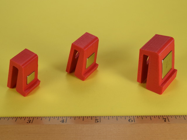 Clips with the same 3 magnet sizes, but now with small ledges to support the hammer.