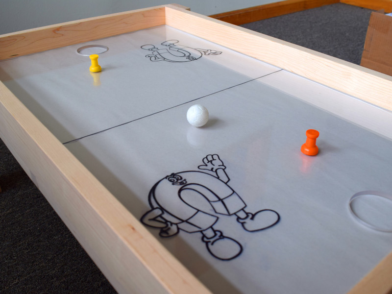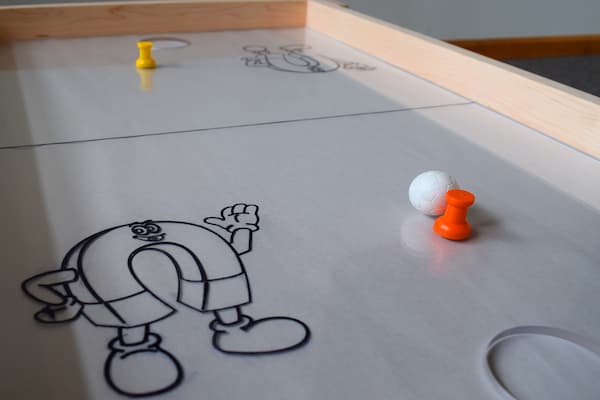 Last month, we tried to cure summer boredom by showcasing some interesting magnet experiments and games. Well, we took it one step further and created our own game - magnetic hockey! It's similar to an air hockey table...but you don't need to plug it in!