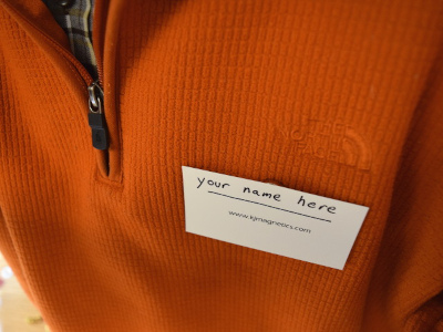 Let's solve the same problem again, but this time we'll stick the name badge through a warm fleece jacket. It measures about 0.04" thick, so the magnet has a larger gap to reach across.