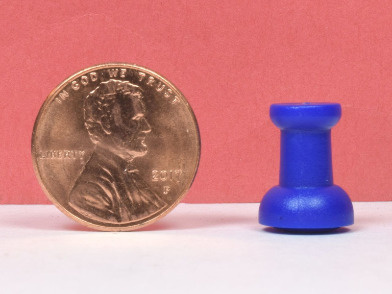 Magnetic thumbtacks in clear view to show design vs. a traditional thumbtack or push pin