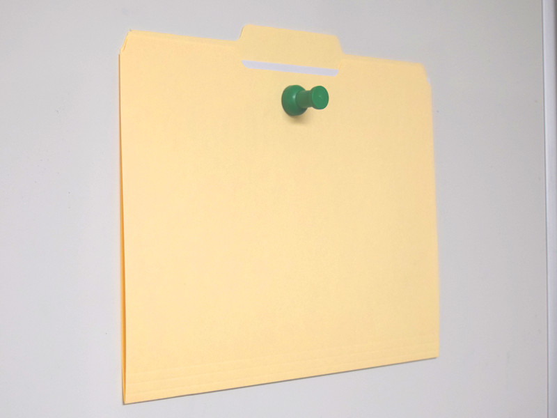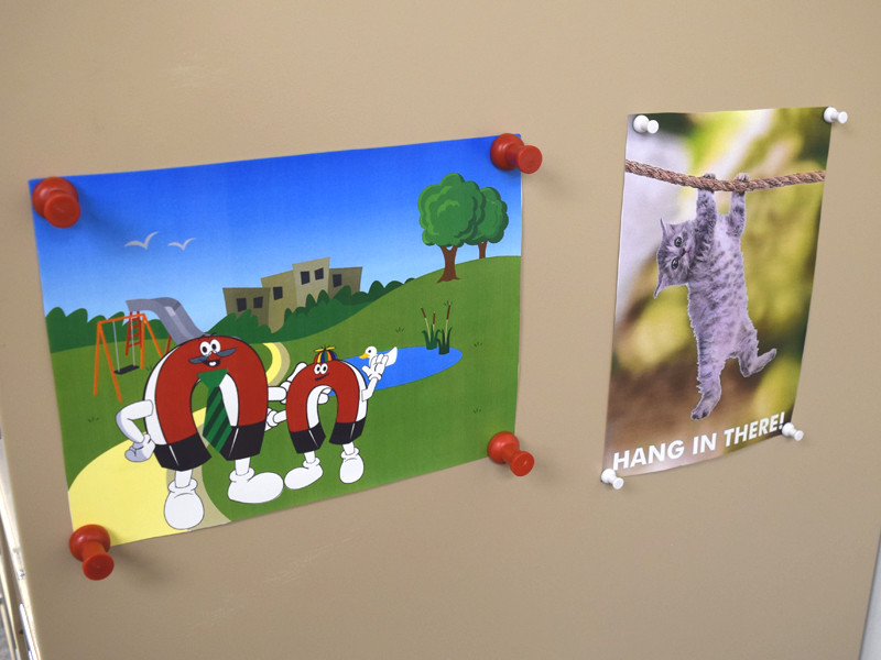 Magnetic thumbtacks for hanging things on a filing cabinet