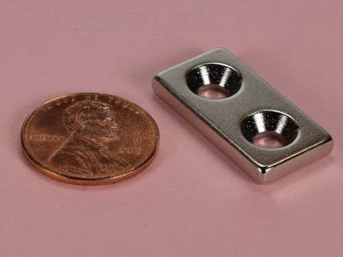 Here we offer the popular size of 1" x 1/2" in 1/8" thickness with holes for two #6 flathead screws to allow for easy fastening. The BX082CS-N is magnetized with the north pole on the countersink side.