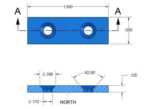 Hole Angle: This is the hole angle of the countersunk hole.82°