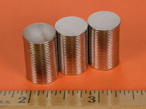Coating: Most neodymium magnets are plated or coated in order to protect the magnet material from corrosion. Check out our Custom Magnets for unplated magnets and other coatings not stocked for this size magnet. Learn more about all available platings and coating in our What Magnet Coating Should I Use? article.Nickel-Copper-Nickel (Ni-Cu-Ni)