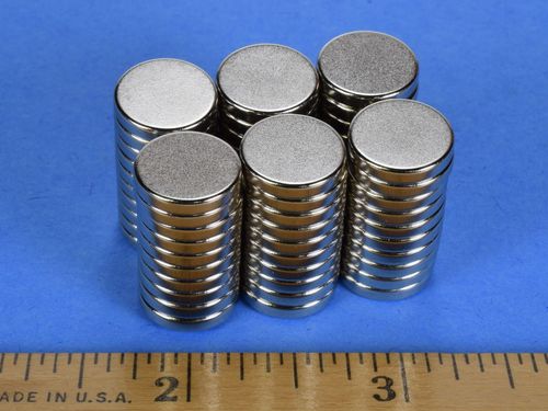 Our 1/2" diameter disc magnets in 3/32" thickness. Useful for a wide range of applications.