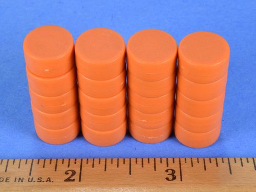 These great magnets are coated with a durable layer of plastic. The 1/2" x 1/4" dimensions are the finished dimensions of the plastic coating. These discs can be slammed together many times without damage. They won't mark or scratch surfaces they come in contact with. They are also completely weatherproof. Please note: Slight color variation may occur from order to order.