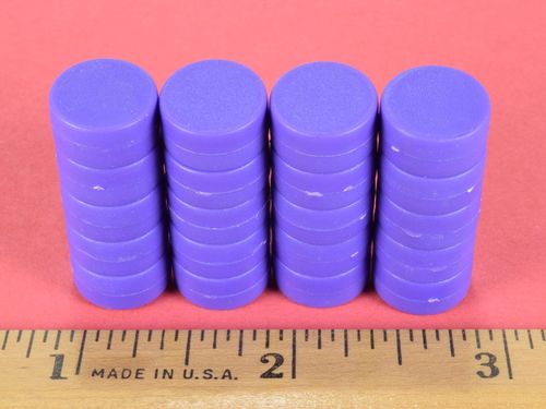 These great magnets are coated with a durable layer of plastic. The 1/2" x 1/4" dimensions are the finished dimensions of the plastic coating. These discs can be slammed together many times without damage. They won't mark or scratch surfaces they come in contact with. They are also completely weatherproof. Please note: Slight color variation may occur from order to order.