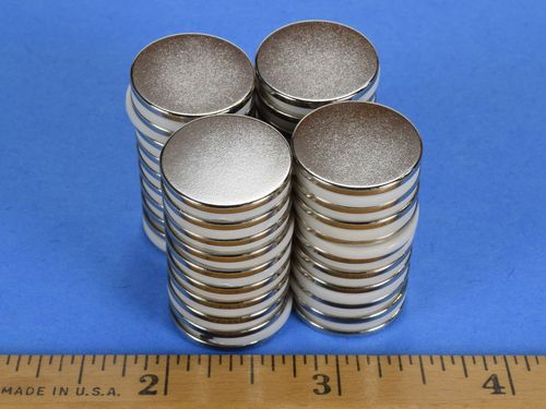 Coating: Most neodymium magnets are plated or coated in order to protect the magnet material from corrosion. Check out our Custom Magnets for unplated magnets and other coatings not stocked for this size magnet. Learn more about all available platings and coating in our What Magnet Coating Should I Use? article.Nickel-Copper-Nickel (Ni-Cu-Ni)