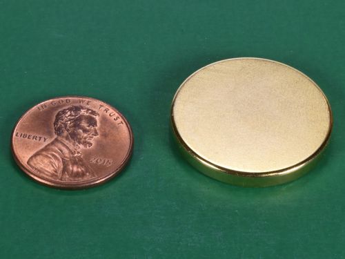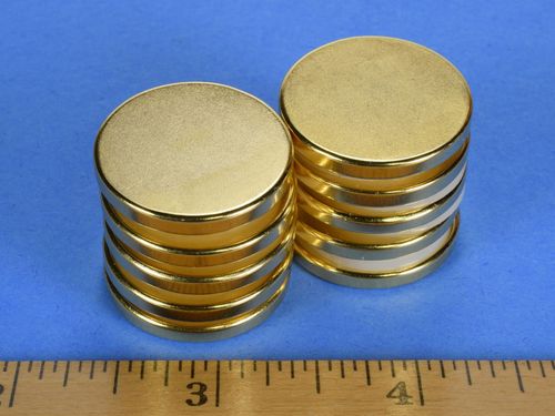 Coating: Most neodymium magnets are plated or coated in order to protect the magnet material from corrosion. Check out our Custom Magnets for unplated magnets and other coatings not stocked for this size magnet. Learn more about all available platings and coating in our What Magnet Coating Should I Use? article.Nickel-Copper-Nickel-Gold (Ni-Cu-Ni-Au)