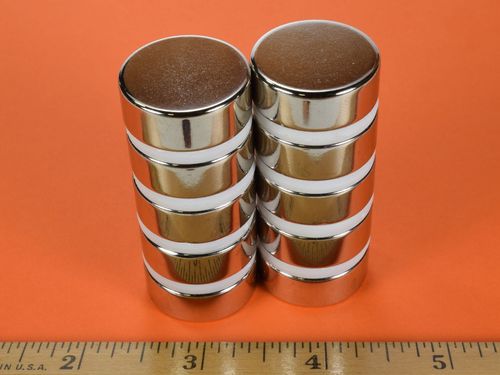 Coating: Most neodymium magnets are plated or coated in order to protect the magnet material from corrosion. Check out our Custom Magnets for unplated magnets and other coatings not stocked for this size magnet. Learn more about all available platings and coating in our What Magnet Coating Should I Use? article.Nickel-Copper-Nickel (Ni-Cu-Ni)