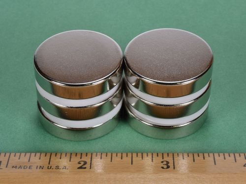 Coating: Most neodymium magnets are plated or coated in order to protect the magnet material from corrosion. Check out our Custom Magnets for unplated magnets and other coatings not stocked for this size magnet. Learn more about all available platings and coating in our What Magnet Coating Should I Use? article.Nickel-Copper-Nickel (Ni-Cu-Ni)