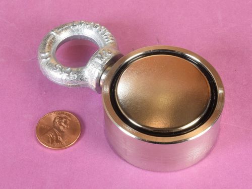 Here is the smallest double-sided magnet in our new line of Magnet Fishing magnets! It might be small, but it still has a very strong pull force! This smaller size is economical, making it a great choice for those who want to get started in the hobby of Magnet Fishing. Just imagine what you can "catch" with a small, 230 lb pull force magnet! Each side has a 230 lb pull force.