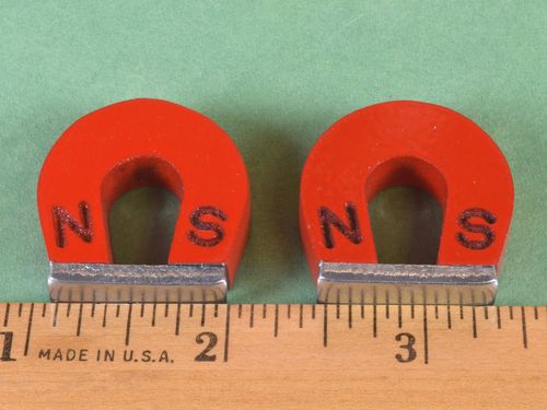 Here is the classic "Joe Magneato" shaped alnico horseshoe magnet. These neat little horseshoes are classic in every way. They are painted bright red and have the poles identified with a "N" and "S" on each leg. Comes complete with keeper. See our blog article on Horseshoe Magnets for more info!