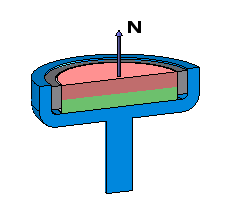 Round Mounting Magnets are assembled with an axially magnetized disc or ring magnet set inside a steel cup. The north pole of the magnet faces outward.