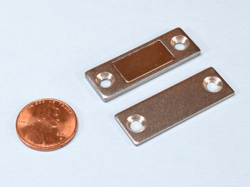 These flat neodymium latches are a great choice for cabinet closures and door closures. Designed to fit in small places, these latches can take up to 10 lb to open. The magnet latches are sold in packs of 2 pairs - each pack will have 2 magnets, 2 stainless steel strike plates and 8 stainless steel screws.