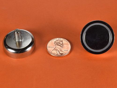 The MM-C style is a flat mounting magnet with male stud permanently attached to the mount. Perfect for putting through a hole and fastening with a nut to attach any hardware assembly.