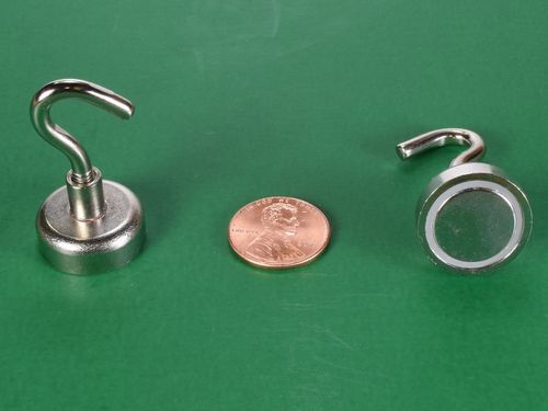 By incredibly popular request, here we offer one of the most useful magnets known to man - an incredibly powerful magnet with a hook attached. Need to hang something in or on your locker? fridge? filing cabinet? This is what you need. If you"ve ever fought to position a drop light while you were working on a car, or anything for that matter, you understand how valuable one of these hooks could be for unrestricted light placement. The possible uses for these great hook magnets are unlimited! The hook, magnet and mount are all nickel plated to resist corrosion and to provide that nice shiny, silver finish.