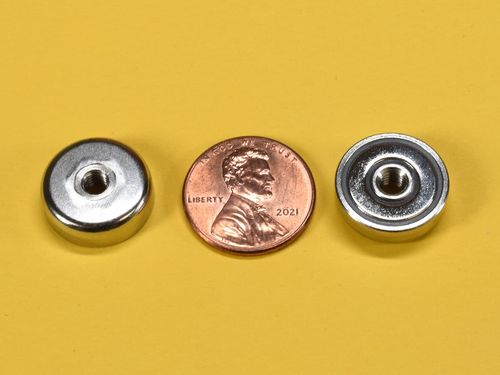 The MM-H style is a flat mounting magnet with an internal thread in the center. These unique mounting magnets are incredibly useful for when you need to securely fasten a magnet to your project.