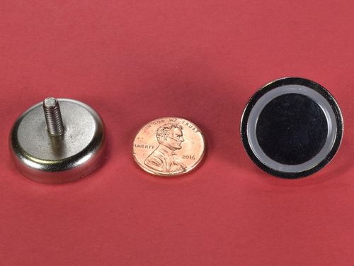 The MMS-C style is a flat mounting magnet with male stud permanently attached to the mount. Perfect for putting through a hole and fastening with a nut to attach any hardware assembly.