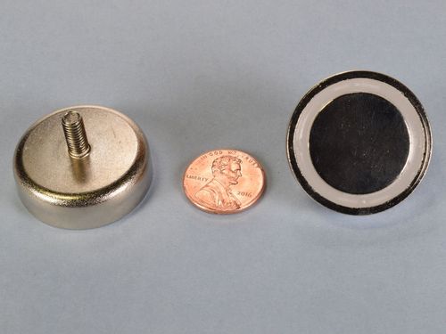 The MMS-C style is a flat mounting magnet with male stud permanently attached to the mount. Perfect for putting through a hole and fastening with a nut to attach any hardware assembly.