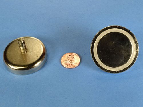 The MMS-C style is a flat mounting magnet with male stud permanently attached to the mount. Perfect for putting through a hole and fastening with a nut to attach any hardware assembly.