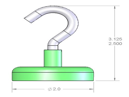 Here we offer one of the most useful magnets known to man - an incredibly powerful magnet with a hook attached. Need to hang something in or on your locker? fridge? filing cabinet? This is what you need. If you've ever fought to position a drop light while you were working on a car, or anything for that matter, you understand how valuable one of these hooks could be for unrestricted light placement. The possible uses for these great hook magnets are unlimited! The hook, magnet and mount are all nickel plated to resist corrosion and to provide that nice shiny, silver finish.