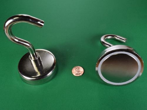 Here we offer one of the most useful magnets known to man - an incredibly powerful magnet with a hook attached. Need to hang something in or on your locker? fridge? filing cabinet? This is what you need. If you've ever fought to position a drop light while you were working on a car, or anything for that matter, you understand how valuable one of these hooks could be for unrestricted light placement. The possible uses for these great hook magnets are unlimited! The hook, magnet and mount are all nickel plated to resist corrosion and to provide that nice shiny, silver finish.