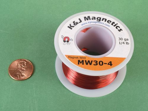 Magnet wire is copper wire coated with a very thin layer of insulation (it is not a magnet). It is used for various applications but is mostly used for constructing windings in transformers, inductors, motors, speakers, electromagnets, and much more!