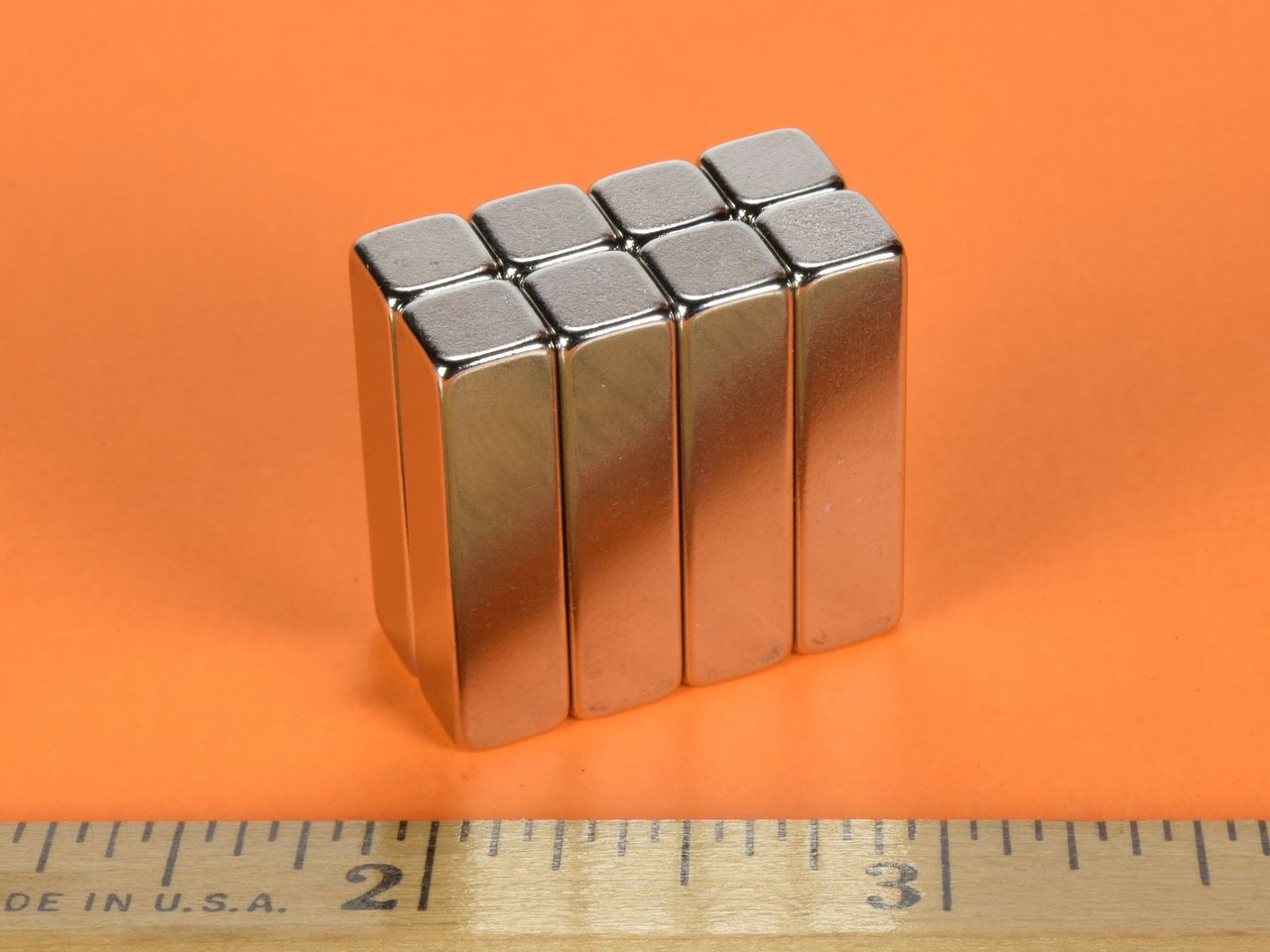 These blocks are magnetized through the 1" thickness so the poles are on the smaller 1/4" x 1/4" ends. Sort of a "square peg". Great for magnetic whiteboards and the fridge as well as art projects and crafts.