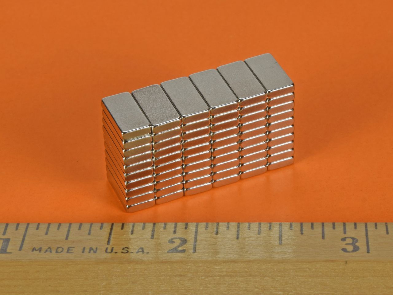 Coating: Most neodymium magnets are plated or coated in order to protect the magnet material from corrosion. Check out our Custom Magnets for unplated magnets and other coatings not stocked for this size magnet. Learn more about all available platings and coating in our What Magnet Coating Should I Use? article.Nickel-Copper-Nickel (Ni-Cu-Ni)