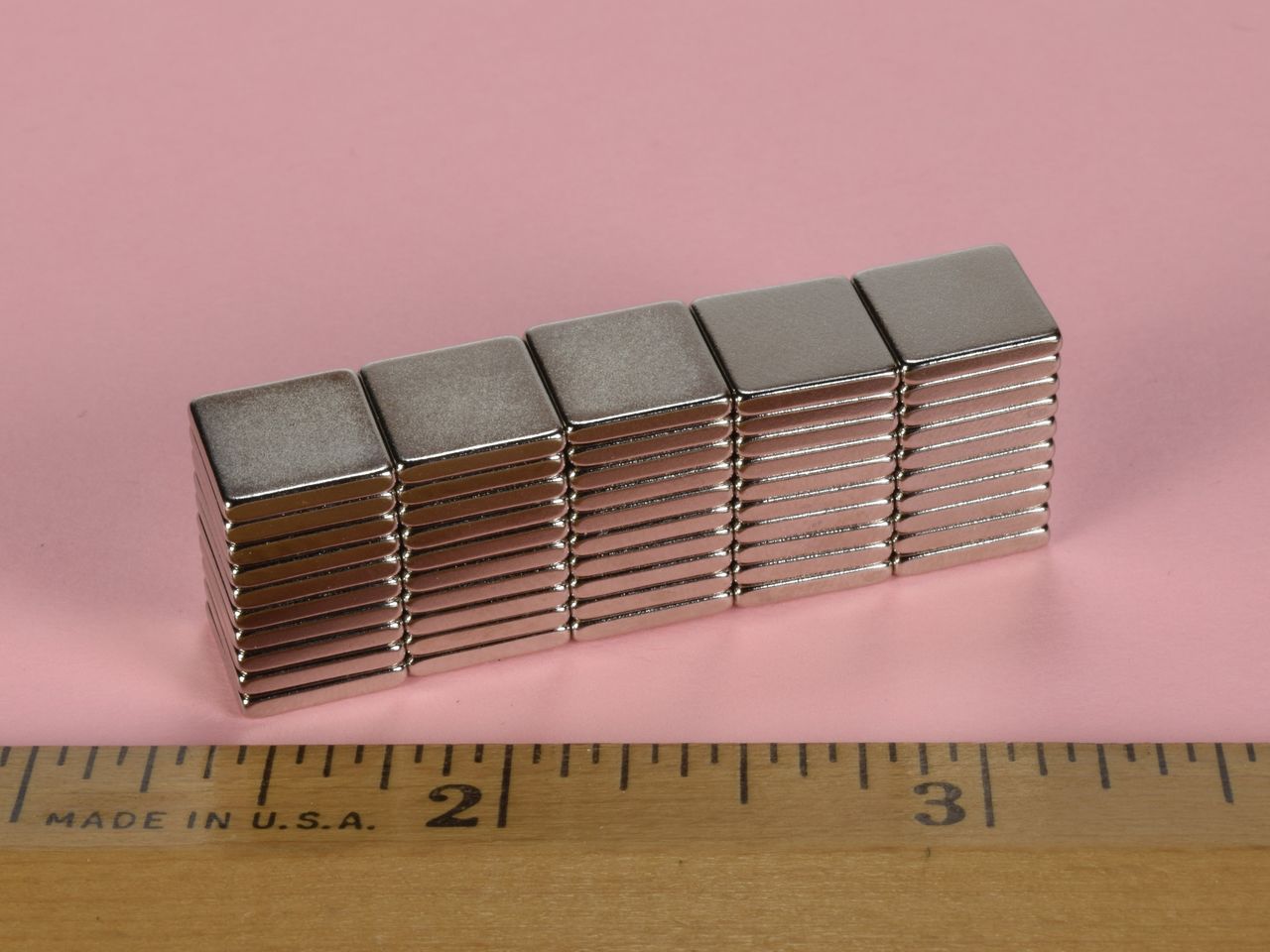 Coating: Most neodymium magnets are plated or coated in order to protect the magnet material from corrosion. Check out our Custom Magnets for unplated magnets and other coatings not stocked for this size magnet. Learn more about all available platings and coating in our What Magnet Coating Should I Use? article.Nickel-Copper-Nickel (Ni-Cu-Ni)