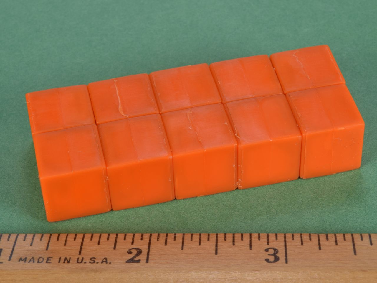 These cubes are coated with a durable layer of plastic. They won't mark or scratch surfaces they come in contact with. They are also completely weatherproof.