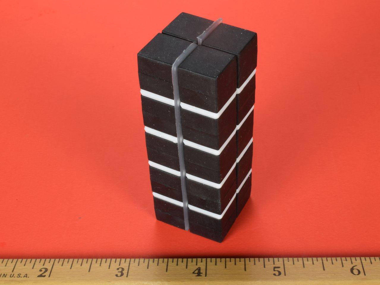 These cubes are coated with a layer of black thermoplastic. This coating makes