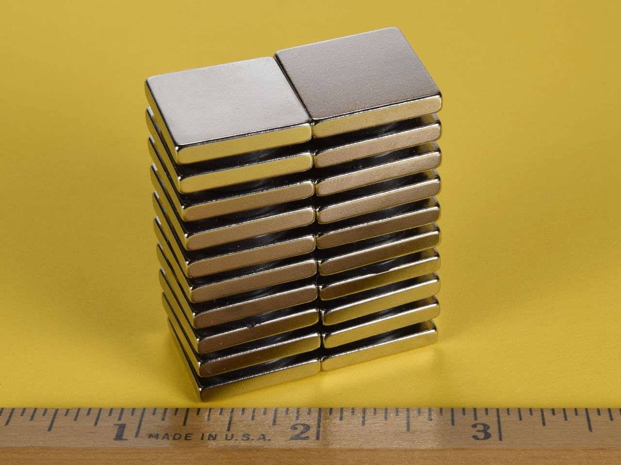 Coating: Most neodymium magnets are plated or coated in order to protect the magnet material from corrosion. Check out our Custom Magnets for unplated magnets and other coatings not stocked for this size magnet. Learn more about all available platings and coating in our What Magnet Coating Should I Use? article.Nickel-Copper-Nickel (Ni-Cu-Ni)