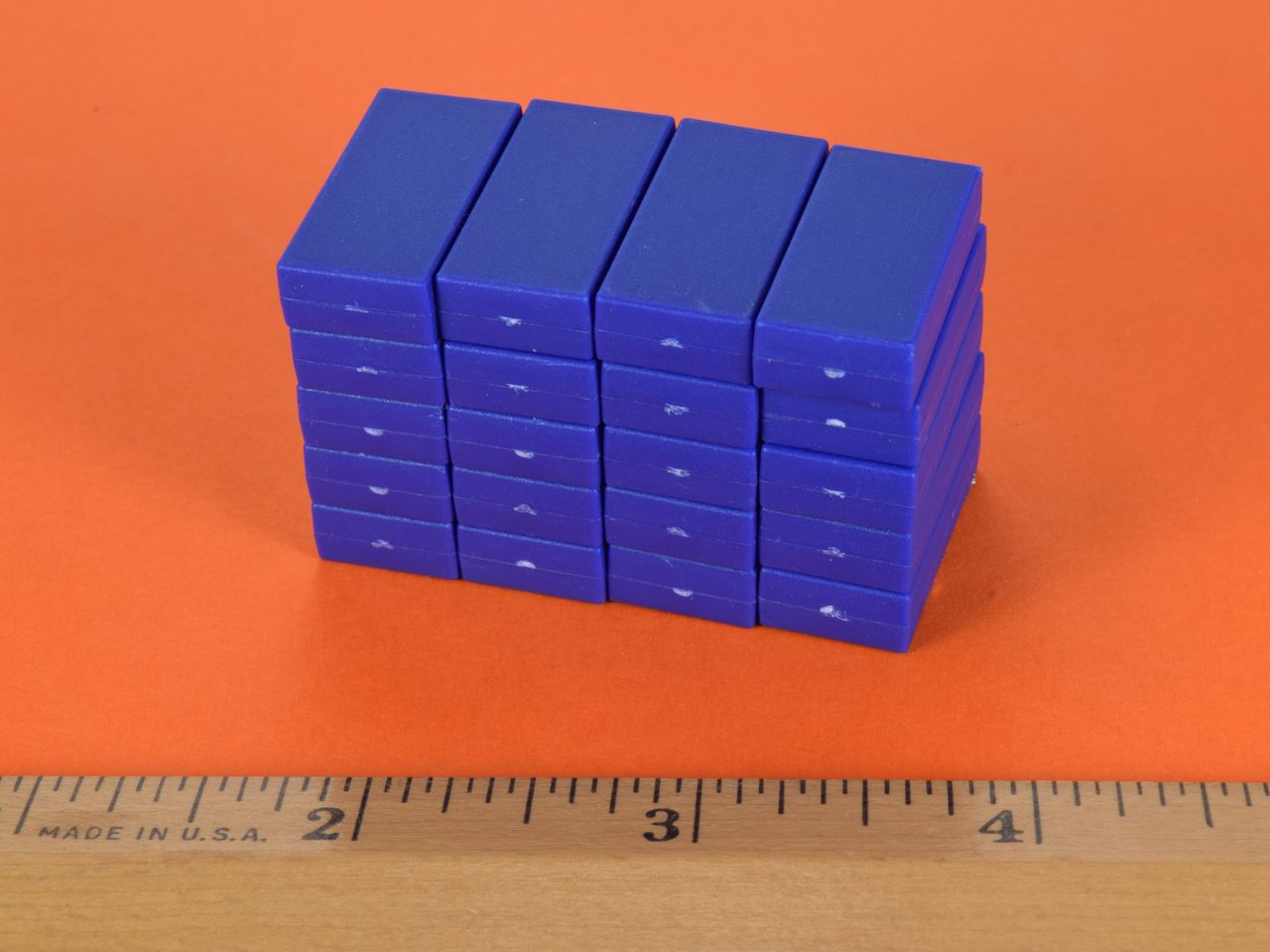 These great magnets are coated with a durable layer of plastic. The 1" x 1/2" x 1/4" dimensions are the finished dimensions of the plastic coating. These blocks can be slammed together many times without damage. They won"t mark or scratch surfaces they come in contact with. They are also completely waterproof and weatherproof. Please note: Slight color variation may occur from order to order.
