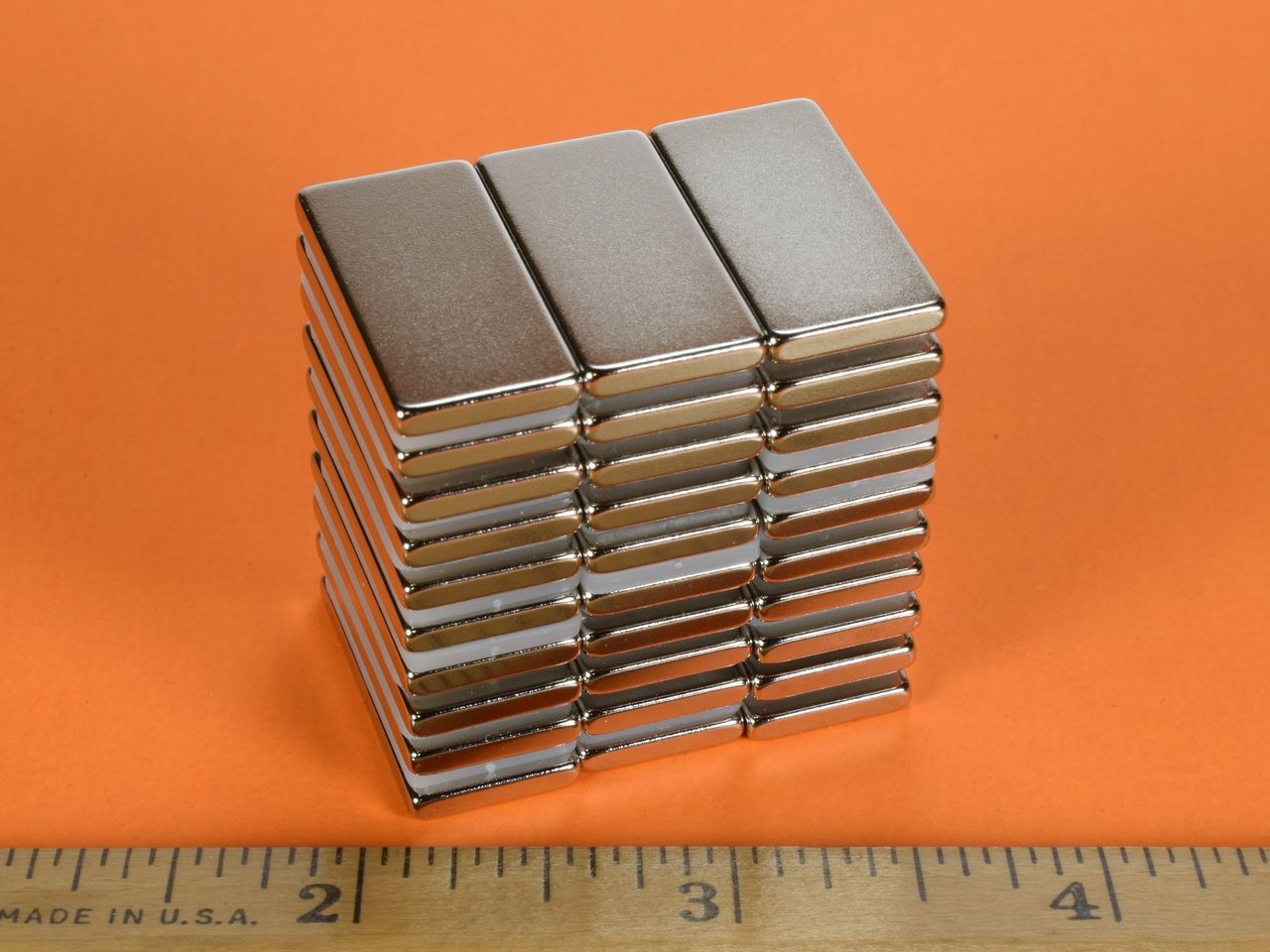 Coating: Most neodymium magnets are plated or coated in order to protect the magnet material from corrosion. Check out our Custom Magnets for unplated magnets and other coatings not stocked for this size magnet. Learn more about all available platings and coating in our What Magnet Coating Should I Use? article.Nickel-Copper-Nickel (Ni-Cu-Ni)