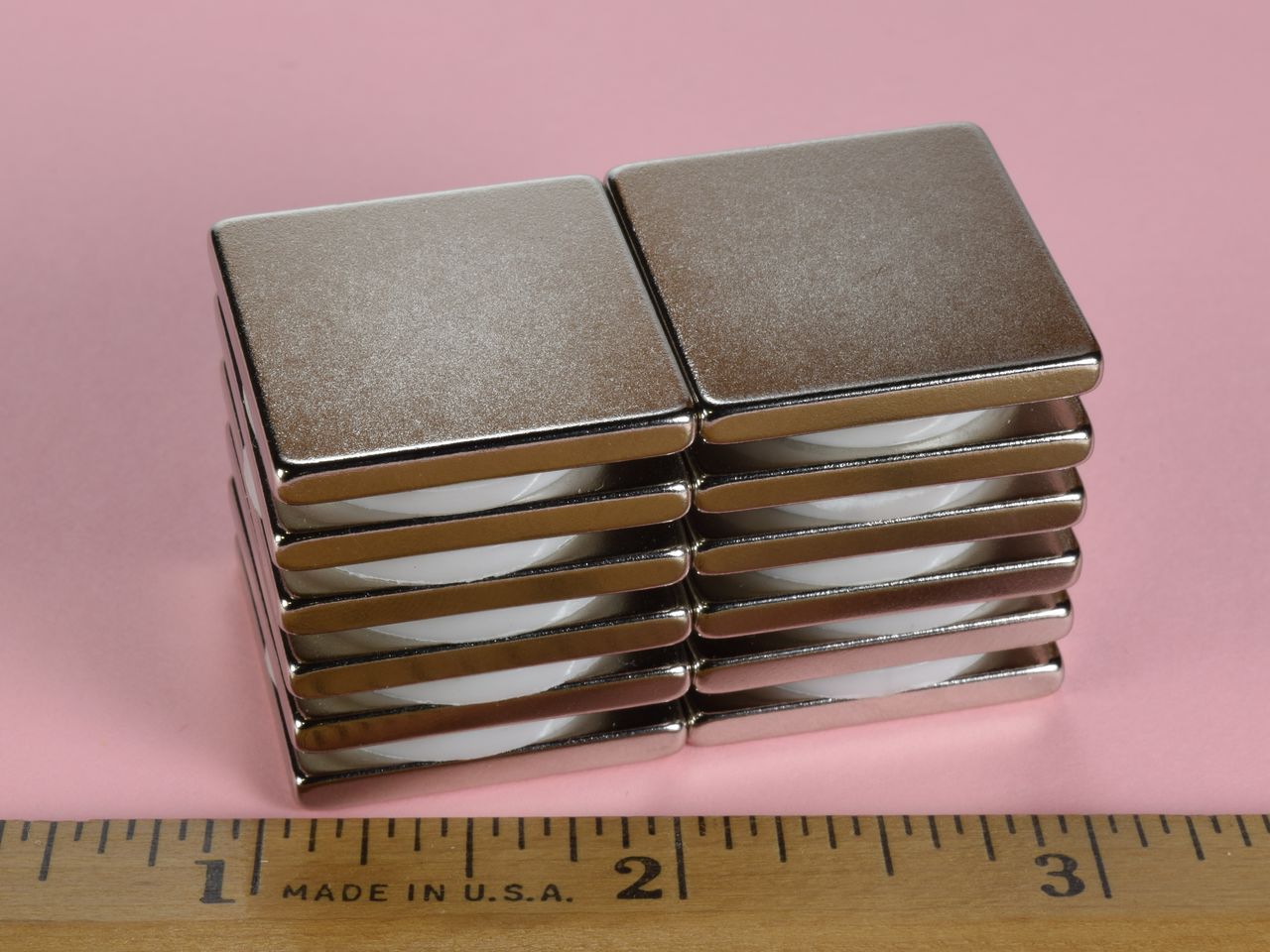 Coating: Most neodymium magnets are plated or coated in order to protect the magnet material from corrosion. Check out our Custom Magnets for unplated magnets and other coatings not stocked for this size magnet. Learn more about all available platings and coating in our What Magnet Coating Should I Use? article.Nickel-Copper-Nickel (Ni-Cu-Ni)