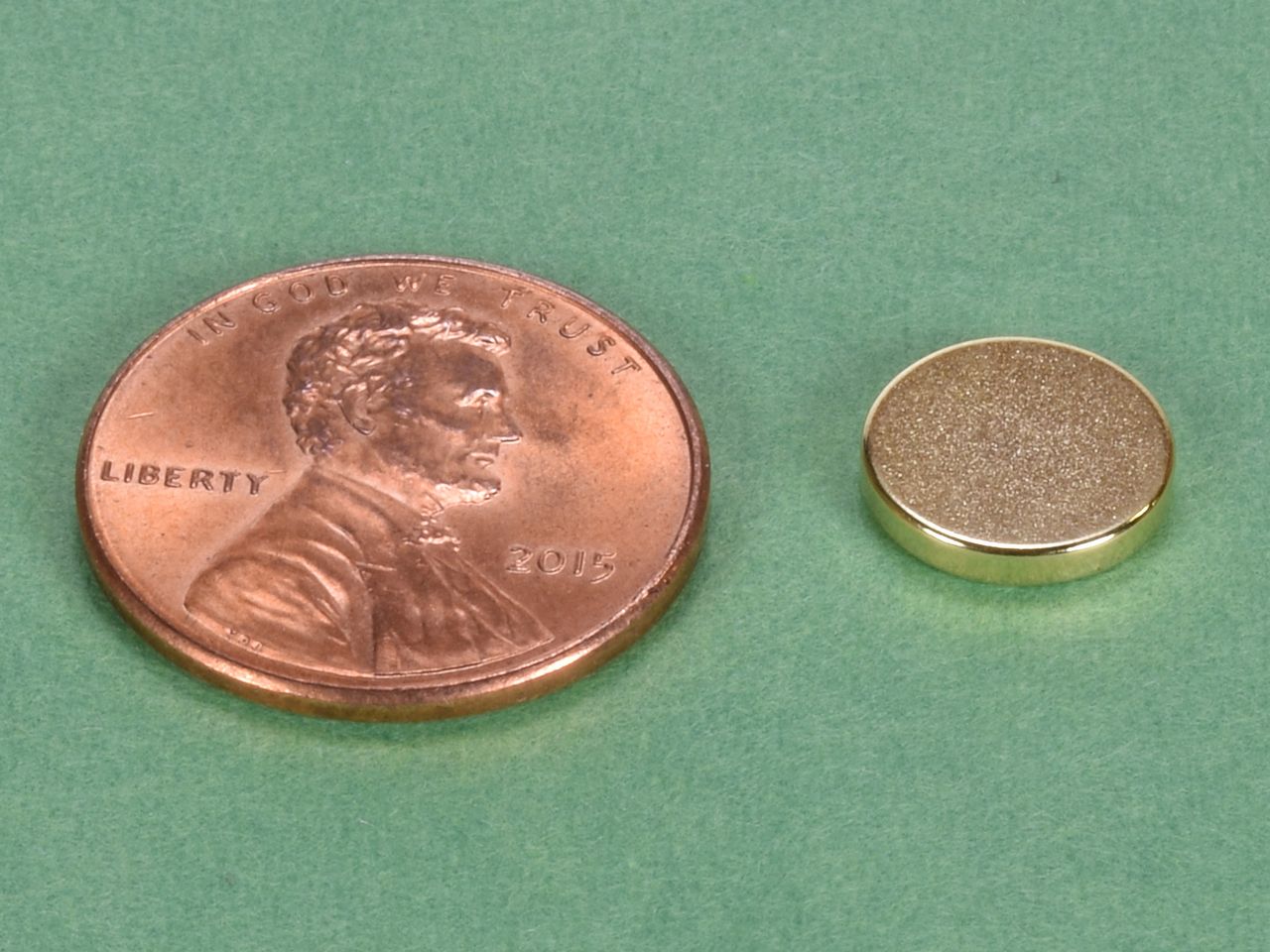 3/8 x 1/16 Inch Neodymium Rare Earth Gold Plated Disc Magnet N52 --thumbnail-13/8 x 1/16 Inch Neodymium Rare Earth Gold Plated Disc Magnet N52 --thumbnail-2