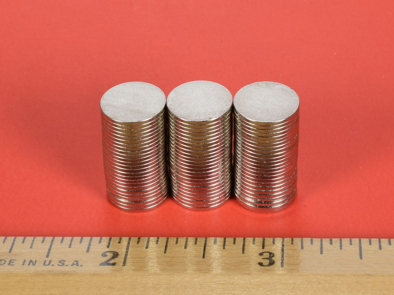 Coating: Most neodymium magnets are plated or coated in order to protect the magnet material from corrosion. Check out our Custom Magnets for unplated magnets and other coatings not stocked for this size magnet. Learn more about all available platings and coating in our What Magnet Coating Should I Use? article.Nickel-Copper-Nickel (Ni-Cu-Ni)