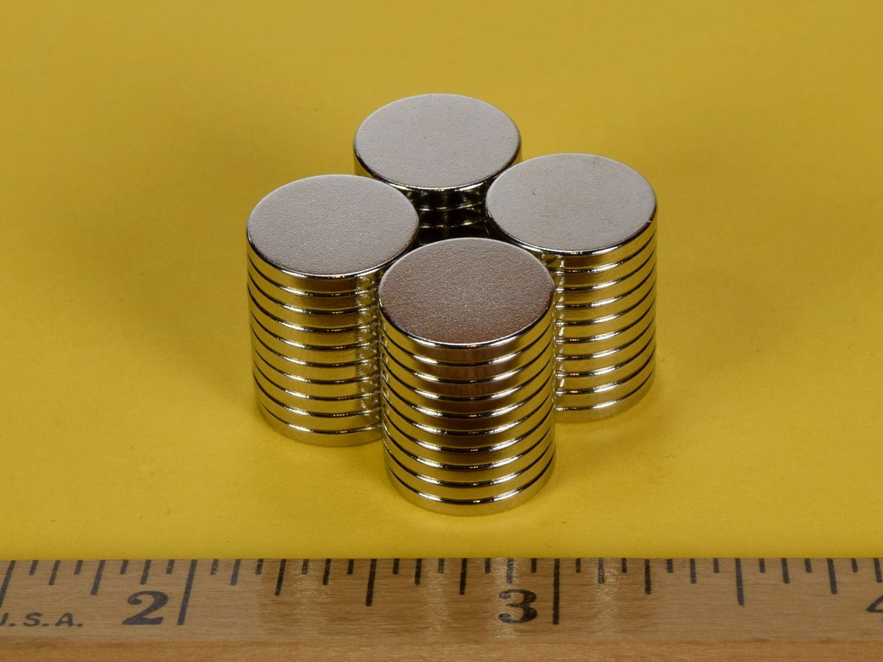 Coating: Most neodymium magnets are plated or coated in order to protect the magnet material from corrosion. Check out our Custom Magnets for unplated magnets and other coatings not stocked for this size magnet. Learn more about all available platings and coating in our What Magnet Coating Should I Use? article.Nickel-Copper-Nickel (Ni-Cu-Ni)