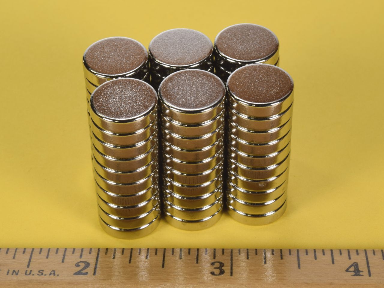 Coating: Most neodymium magnets are plated or coated in order to protect the magnet material from corrosion. Check out our Custom Magnets for unplated magnets and other coatings not stocked for this size magnet. Learn more about all available platings and coating in our What Magnet Coating Should I Use? article.Nickel-Copper-Nickel (Ni-Cu-Ni)