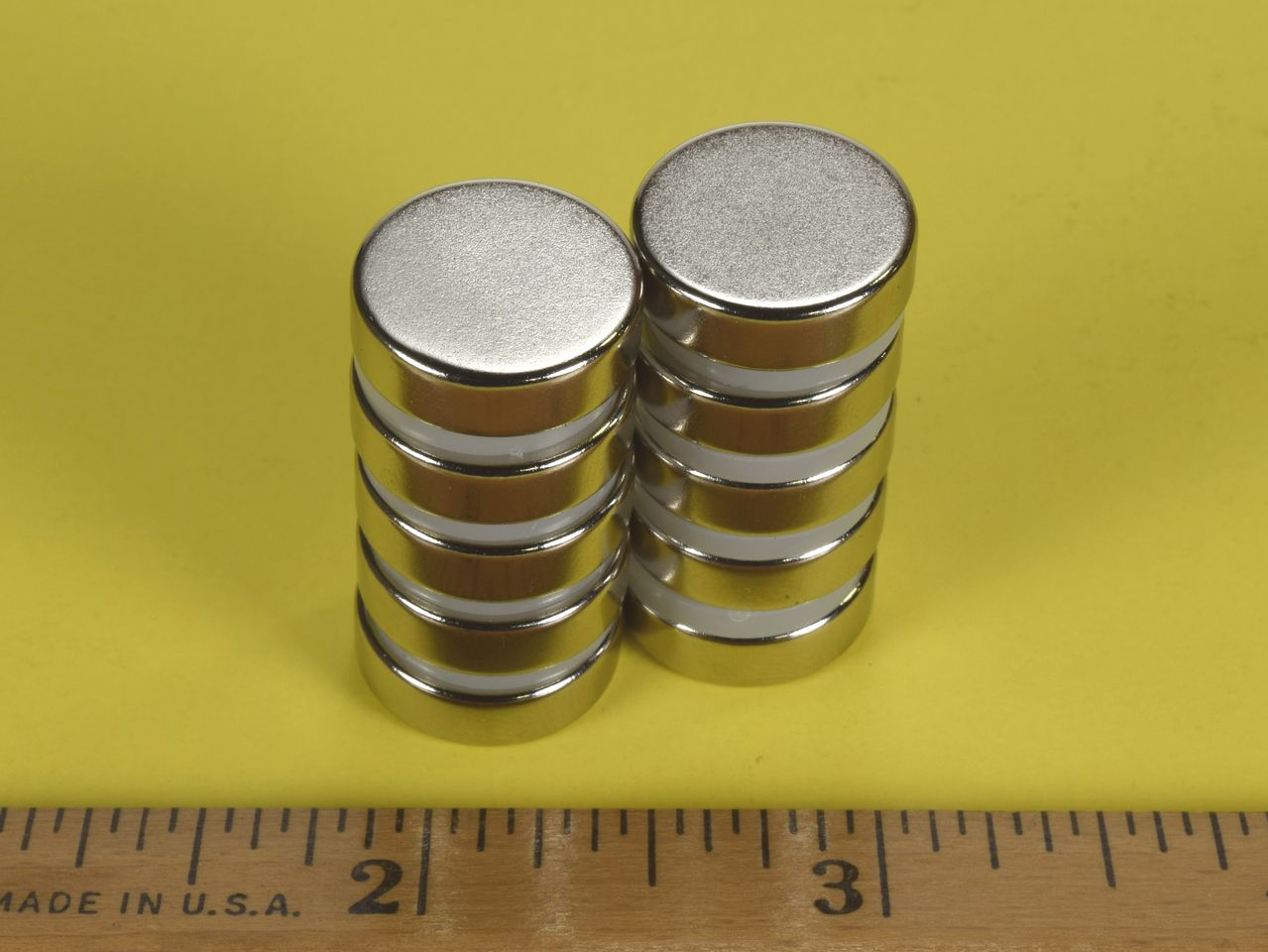 Coating: Most neodymium magnets are plated or coated in order to protect the magnet material from corrosion. Check out our Custom Magnets for unplated magnets and other coatings not stocked for this size magnet. Learn more about all available platings and coating in our What Magnet Coating Should I Use? article.Nickel-Copper-Nickel (Ni-Cu-Ni)