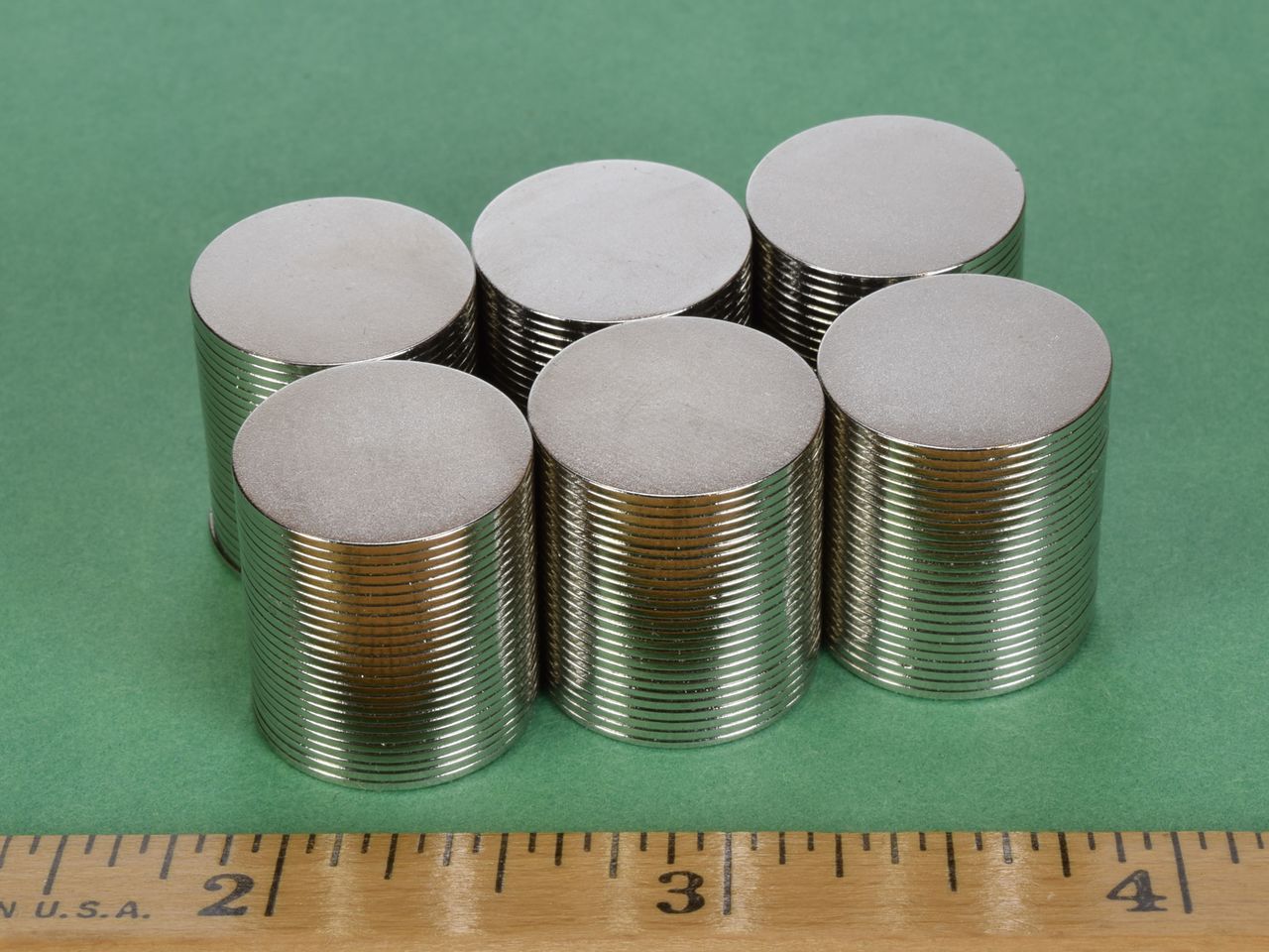Coating: Most neodymium magnets are plated or coated in order to protect the magnet material from corrosion. Check out our Custom Magnets for unplated magnets and other coatings not stocked for this size magnet. Learn more about all available platings and coating in our What Magnet Coating Should I Use? article.Nickel-Copper-Nickel (Ni-Cu-Ni)