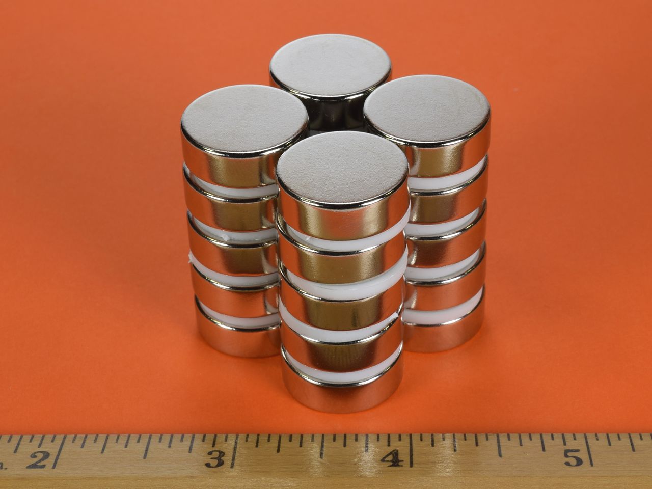 Coating: Most neodymium magnets are plated or coated in order to protect the magnet material from corrosion. Check out our Custom Magnets for unplated magnets and other coatings not stocked for this size magnet. Learn more about all available platings and coating in our What Magnet Coating Should I Use? article.Nickel-Copper-Nickel (Ni-Cu-Ni)