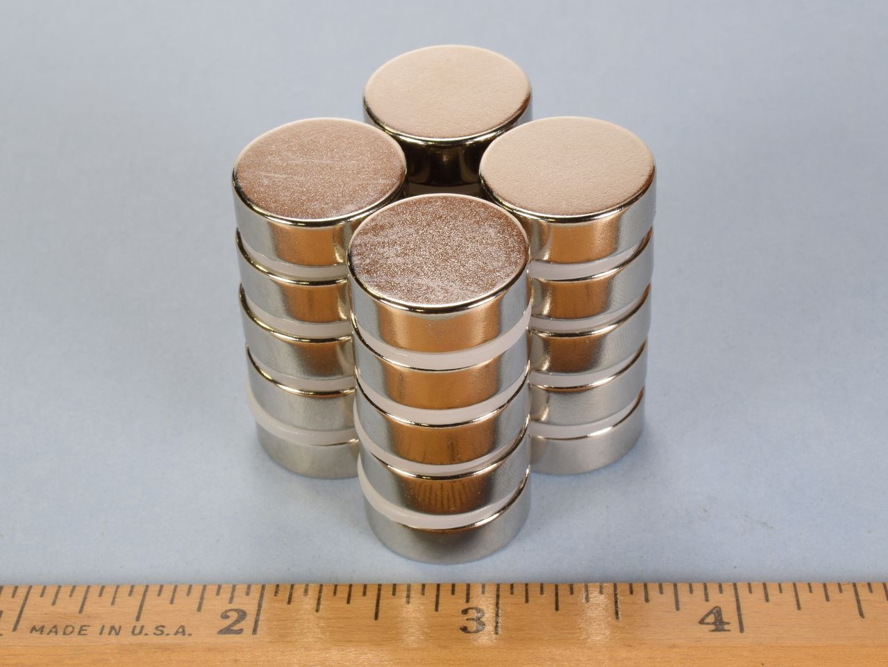 Coating: Most neodymium magnets are plated or coated in order to protect the magnet material from corrosion. Check out our Custom Magnets for unplated magnets and other coatings not stocked for this size magnet. Learn more about all available platings and coating in our What Magnet Coating Should I Use? article.Nickel-Copper-Nickel (Ni-Cu-Ni)